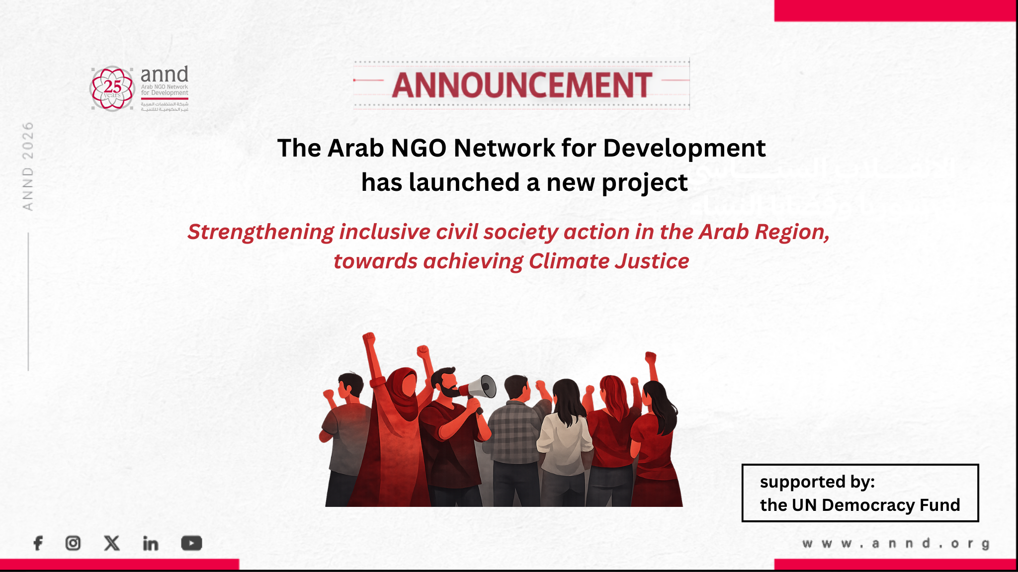Strengthening inclusive civil society action in the Arab Region towards achieving Climate Justice, supported by the UN Democracy Fund.