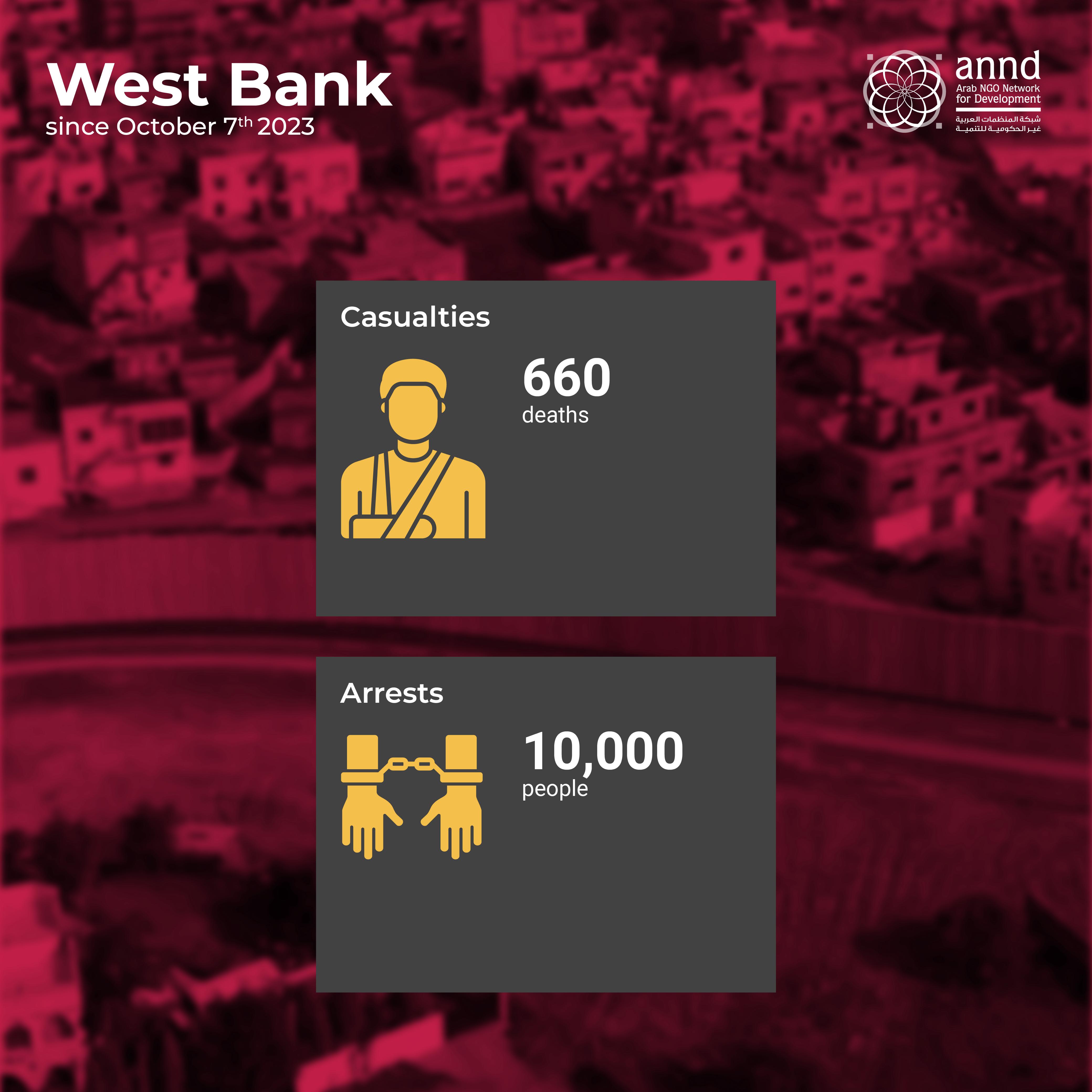Since the start of the war on Gaza on October 7, 2023, the West Bank witnessed a significant escalation in Israeli attacks. Israeli military operations in the West Bank included invasions of cities, villages, and refugee camps, resulting in the deaths of more than 660 Palestinians and the arrest of around 10,000 people, including activists and former prisoners. Daily confrontations with Israeli forces continued in various parts of the West Bank. We will revisit the situation in the West Bank at the end of this report.