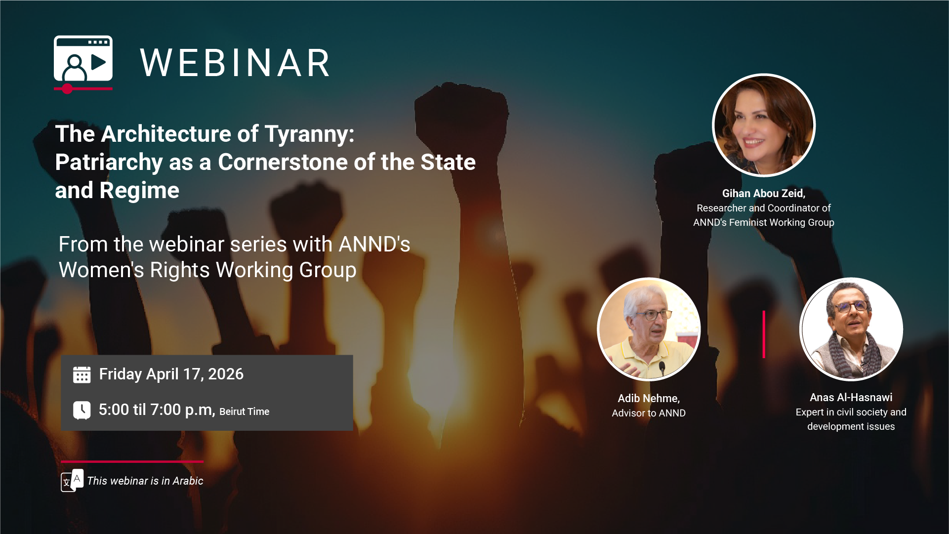 In this context, the Feminist Working Group of the Arab Network for NGOs invites you to a seminar entitled: "The Architecture of Despotism: Patriarchy as a Cornerstone of the State and Regime."