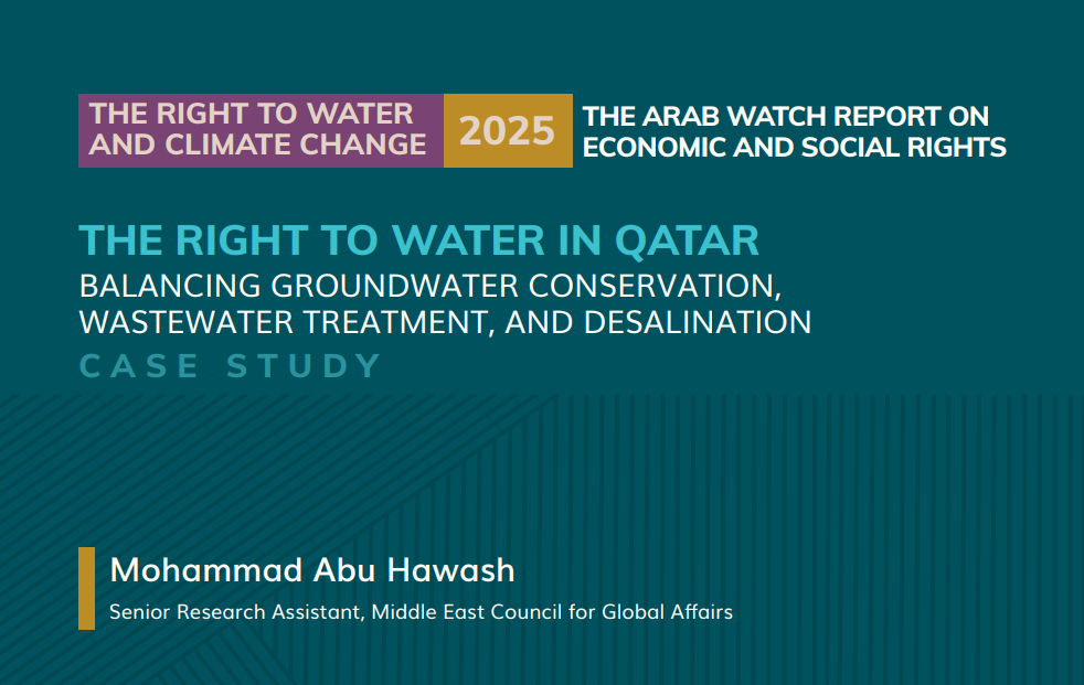 Like its peers in the GCC, Qatar utilizes its plentiful hydrocarbon resources to create an artificial abundance of water through desalination, overcoming the extreme scarcity of natural freshwater resources in the country. Thus, the government has provided universal access to water for the country's population, ensuring the right to water for citizens and residents, whether in urban or rural communities. However, due to the decades-long over-abstraction of groundwater, the country’s only natural source of freshwater, Qatar’s aquifers have been severely depleted. This situation threatens Qatar’s future generations’ right to access freshwater, especially in emergencies where the country’s desalination facilities are rendered inoperable due to natural or political events. Such ‘nightmare scenarios’ have received increased attention recently due to regional instability (Mills, 2025). Qatar was also the target of two attacks by Iran and Israel in 2025, which raised concerns about the water sector’s vulnerabilities and the importance of safeguarding natural freshwater as an emergency reserve (Al-Jazeera, 2025a; Al-Jazeera, 202.