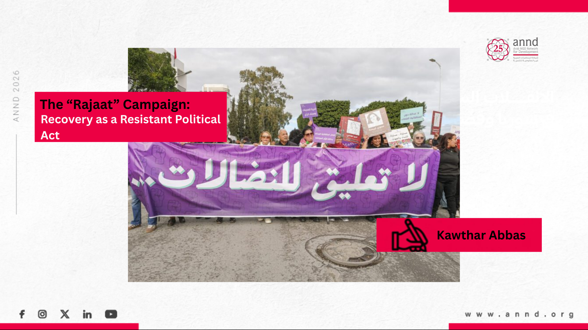 My first school and my safe home—this is how I always felt inside the Tunisian Association of Democratic Women. I had left the north of the continent for its south decades ago, yet I resisted absence and erasure, and came to understand borders, citizenship, and integration outside the dominant epistemic contexts in which we were raised and which shaped us. All of this insistence on not leaving history, and the insistence on resisting the “Destourians and Khwanjia”: those reactionary forces that sought to strike the project we nurtured with the water of our own eyes. Despite all this, the association’s doors were forcibly and oppressively closed, and the news of the suspension of our activities was painfully devastating. We closed ranks and launched the “Rajaat” campaign—so simply and with such steadfastness. We return because we are a living memory that founded an epistemic and political space, and because we must continue writing women’s history through women’s voices, and preserve this living heritage formed through decades of struggle.
